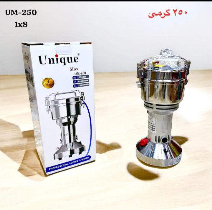 آسیاب صنعتی یونیک مدل UM با ظرفیت ۲۵۰ گرم بهترین گزینه برای خرد کردن انواع دانهها و ادویهها در محیطهای صنعتی و تجاری است.