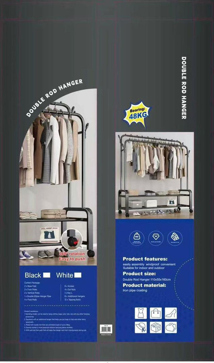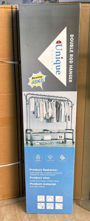 طراحی دو میلهای باعث میشه فضای آویزت دو برابر بشه و دیگه لباسها رو روی هم تلنبار نکنی. بدنه از لوله آهنی با روکش مقاوم ساخته شده، هم بادوامه هم به این راحتیا زنگ نمیزنه. نصبش هم دردسر نداره، سریع سرهم میشه و آماده استفادهست.